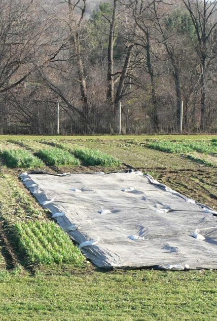 Terpal digunakan sebagai alas kandang, penutup pakan, serta penampung limbah.